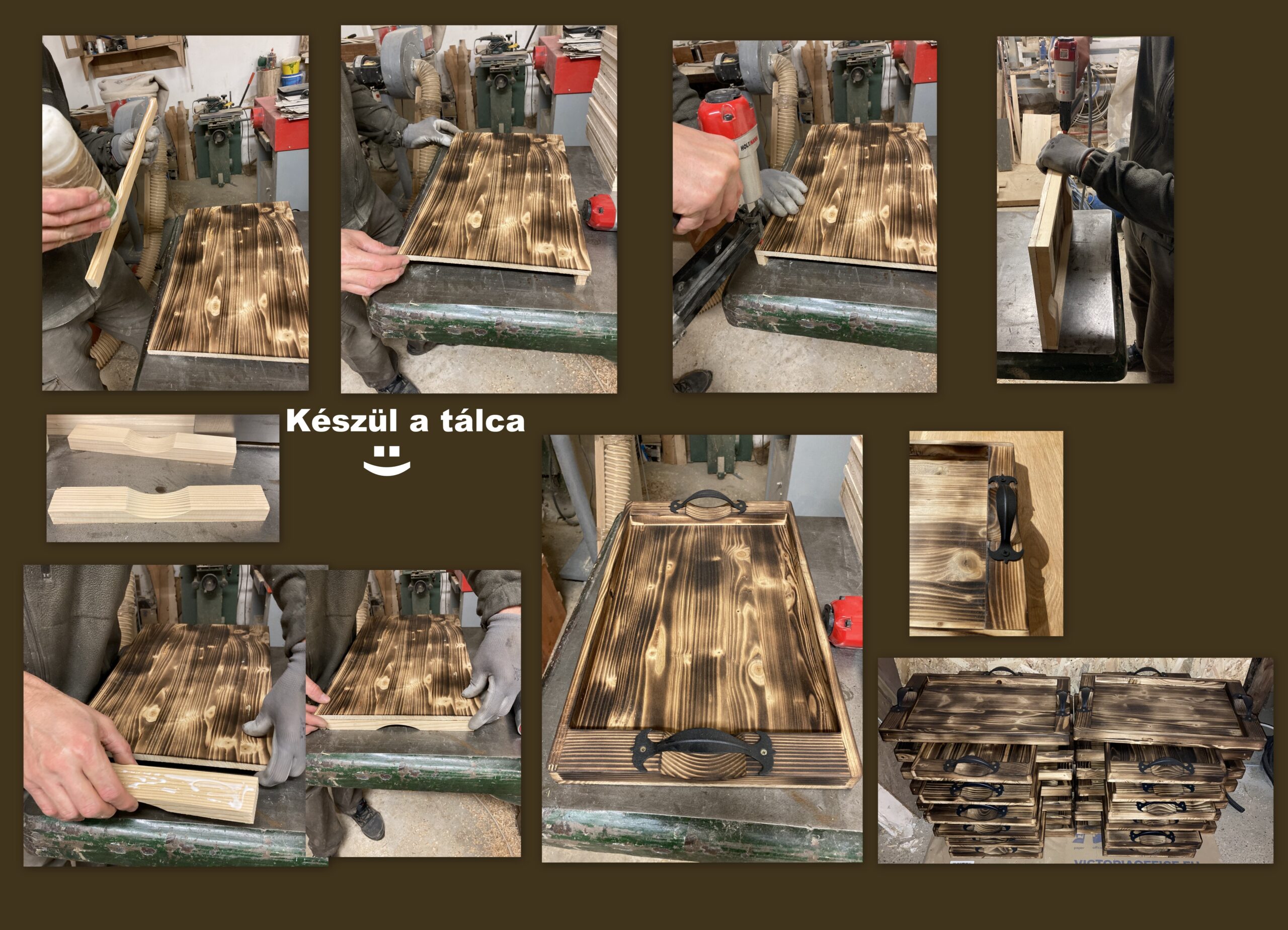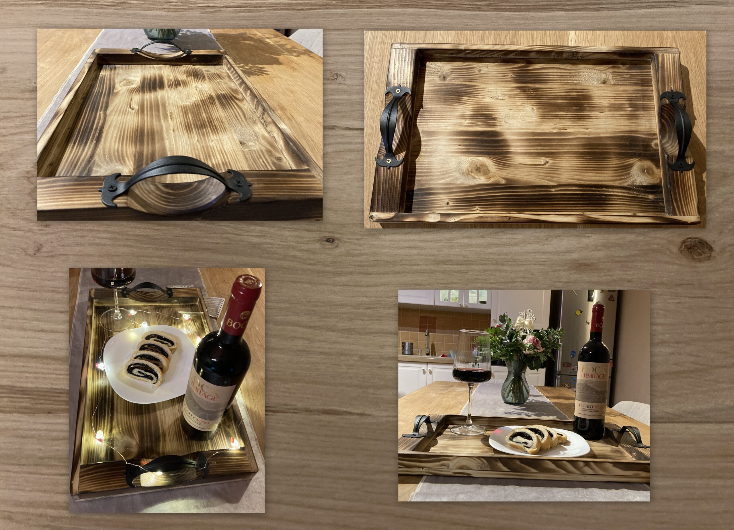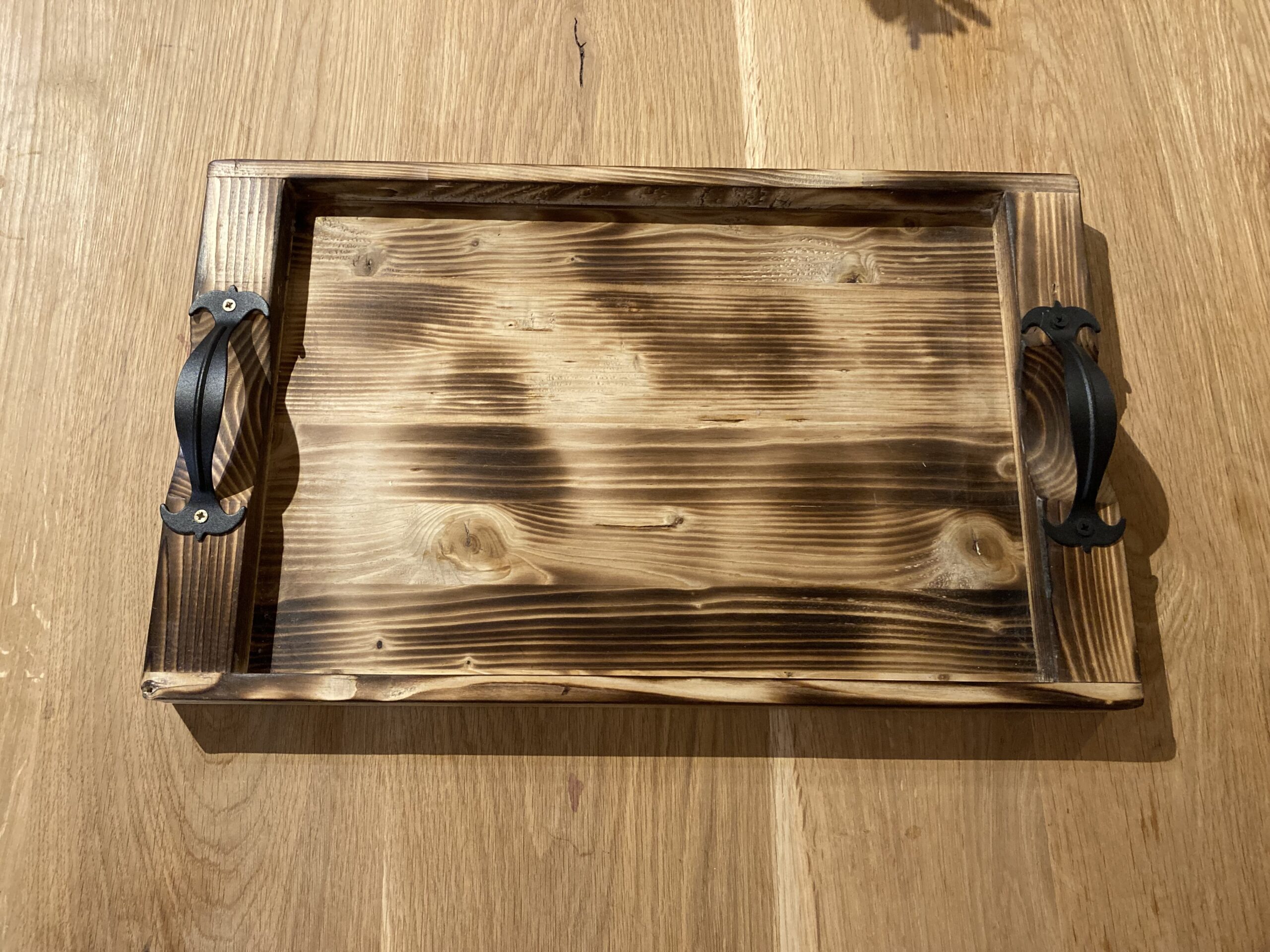 Tömör fenyőfából égetett eljárással készült rusztikus hatású tálca.Felülete viaszolt. Csak rendelésre, elkészitési és szállitási idő 1-3 hét.